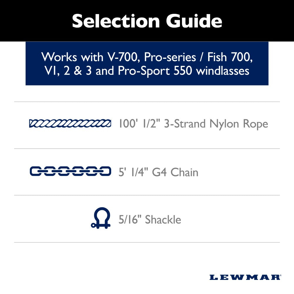 Lewmar Anchor Rode - 1/4 in Chain (5'), 1/2 in 3-Strand Polyster (100') (69000331)