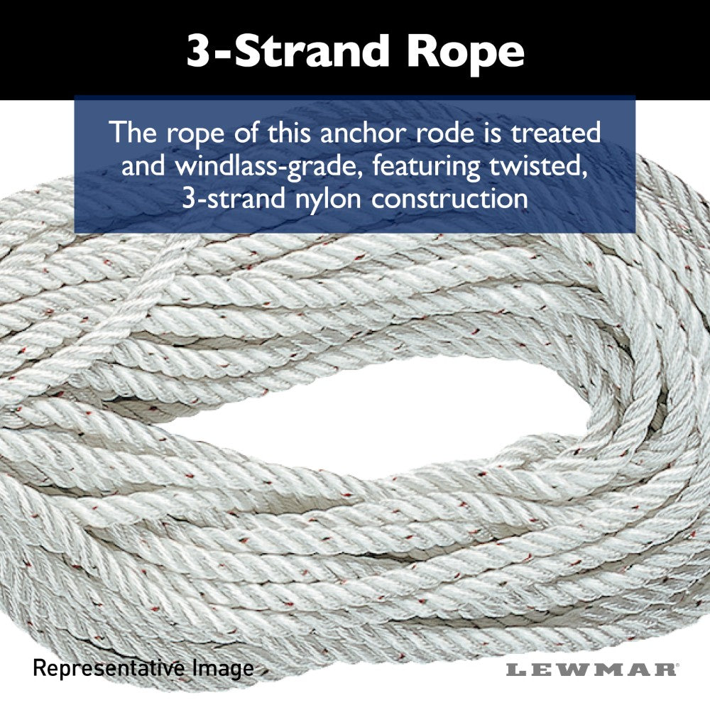 Lewmar Anchor Rode - 1/4 in Chain (15'), 1/2 in 3-Strand Polyster (200') (69000334)