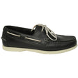 Crazy 4 Sailing Women's Vermont 2-Eye Leather Shoes (Navy) (C4S-14581) are moccasin-style sailing shoes made from oiled/waxed pull-up Cyclon leather for durability and seawater resistance. They feature 360° leather laces, stitched sole, shock-absorbing heel, and non-marking rubber sole with slip-resistant wave pattern. Footbed ensures fatigue-free comfort for on-deck or casual wear.