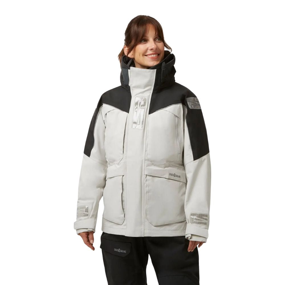 Crazy 4 Sailing Stavanger II Ocean Women's Jacket (Silver / Carbon) (C4S-17402) is a premium waterproof offshore sailing jacket designed for women. It keeps you dry and comfortable in all weather conditions, offering reliable protection while allowing you to focus on your sailing adventures.