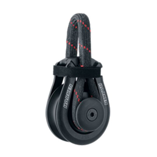 These multipurpose blocks are a must on racing yachts of all sizes. Opening sideplates make them easy to deploy, allowing crew to quickly fasten them wherever needederfect for temporary leads, line deflection, and static line functions requiring small adjustments. A strop soft-attach is fixed on one side, but is easily removable on the other. The strop carries the block primary load and articulates for a fair lead. The Velcro® strap is permanently attached to one sideplate and holds the block securely closed when sideplates are alignedven under the highest loads. The strap has a broad reflective tab for easier operation with gloves. Harken composite bearing technology (ULC) ensures sheaves turn smoothly and maintain efficiency under extreme loading. Snap-fit Torlon® bearings carry sideloads. An integral headspacer prevents Hard Lube-anodized aluminum sideplates from deflecting and binding. The wide sheave allows a range of line diameters.