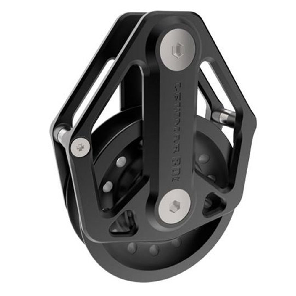 The Lewmar 105mm High Load Block - Runner Block with Becket runs on an impregnated composite bearings with dual side thrust bearings for free-running at initial load.