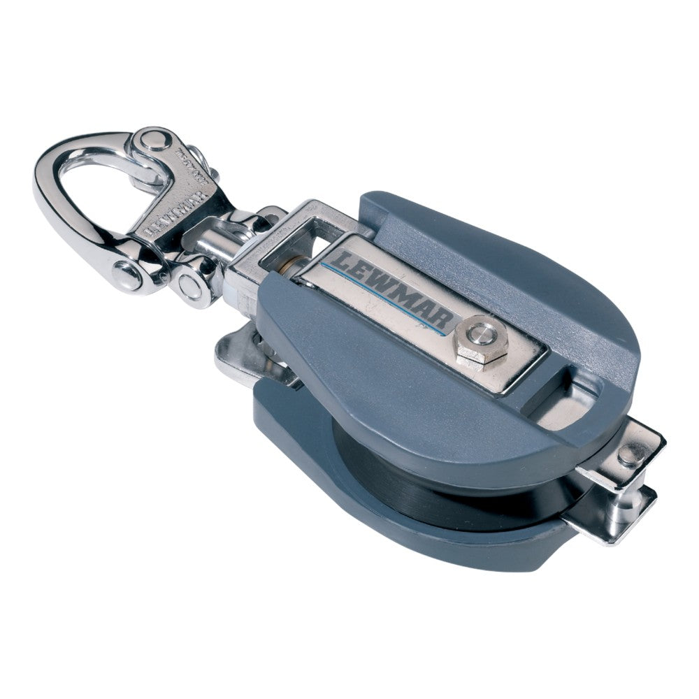 Ideal for general spinnaker use, the Snatch Block features the Lewmar snap shackle and soft, synthetic rubber cheeks to handle rough treatment. Where a snatch block is attached in a situation which does not permit full movement, such as through some toe rails, a shackle must be used to ensure full articulation.