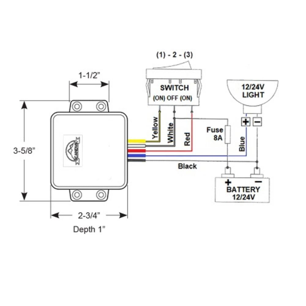 The Tortuga Dimmer is designed to easily adjust the interior or exterior light level from 0-100% output. Touch the "up" button to turn light on and touch the "down" button to turn light off. Press and hold either up or down, on the included switch, to increase or decrease the light output level to your likeness. Release at any point to maintain the current brightness. If you are leaving the boat, the Tortuga features and exit mode. Push the "down" button two times within 1.5 seconds, the light will flass twice, and turn off after 1 minute. The Tortuga is Pulse Width Modulated so it will work with LED, incadescent or halogen lights. It is also rated for 12V or 24V. Die cast aluminum housing.