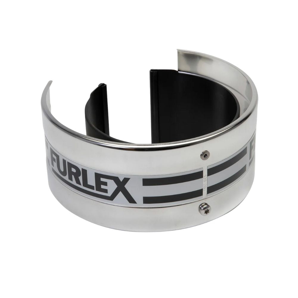 The Selden Drum Lineguard Assembly for 300S Furlers (539-280-01) is a stainless steel drum cover designed for all manual Furlex 300 systems produced between 1997–2013. It features the Furlex logo and protects the drum while providing a clean, finished appearance.
