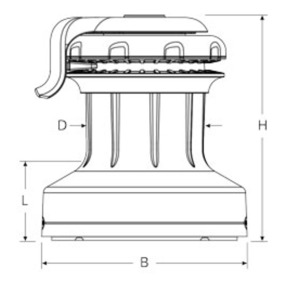 | Materials | Hard anodised aluminium drum and centre stem, aluminium self-tailing arm. Grade 316 stainless steel shaft and pawls. Grade 2205 stainless steel axle pins. Aluminium bronze gears. Glass-filled nylon self tailer. Self-lubricating acetal bearings. | |