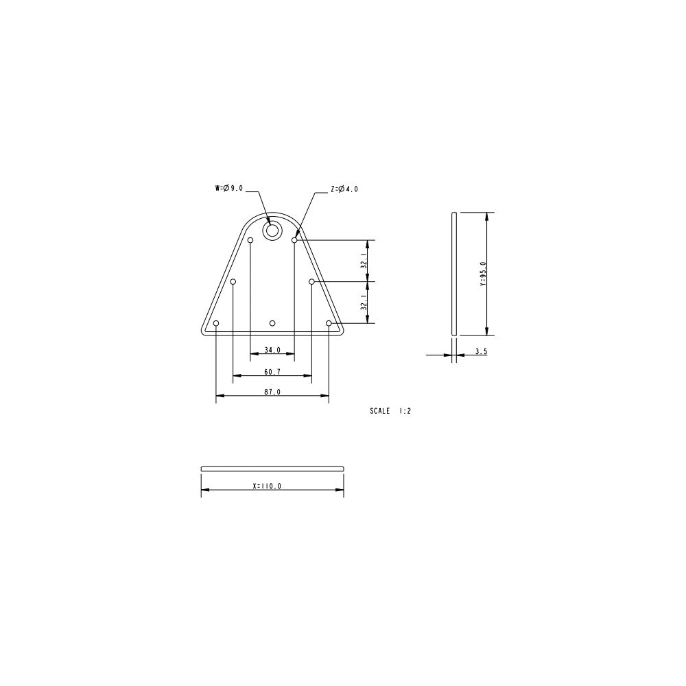 Allen Batten Car Headboard - Spinnaker Sail Plate 110 x 95 mm - 9mm Hole Dia. (A.343)