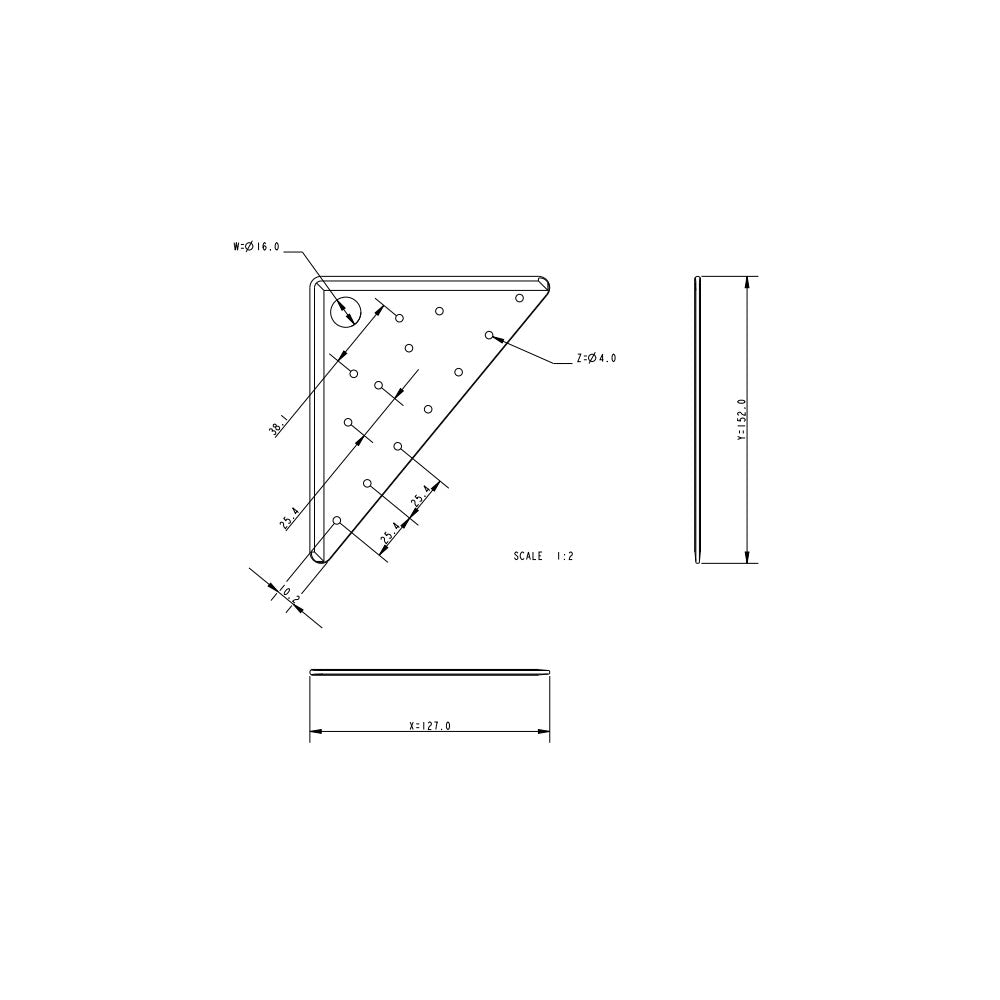 Allen Batten Car Headboard - Mainsail Sail Plate 126 x 150 mm (Large Triangle Shape) - 16mm Hole Dia. (A.643)