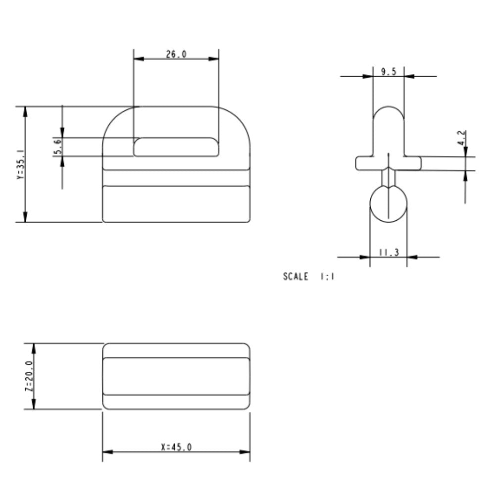 | Y2 | 11/64 in | 4.23 mm |