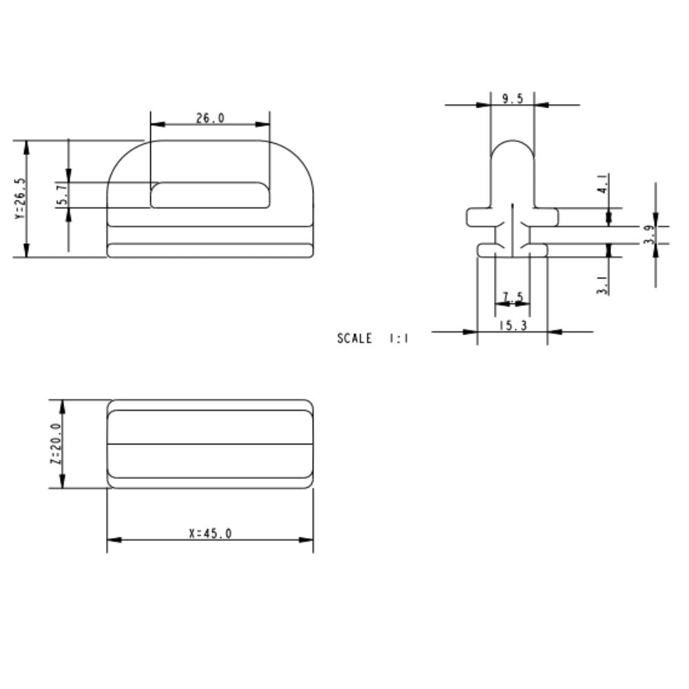 | Y2 | 1/8 in | 3.1 mm |