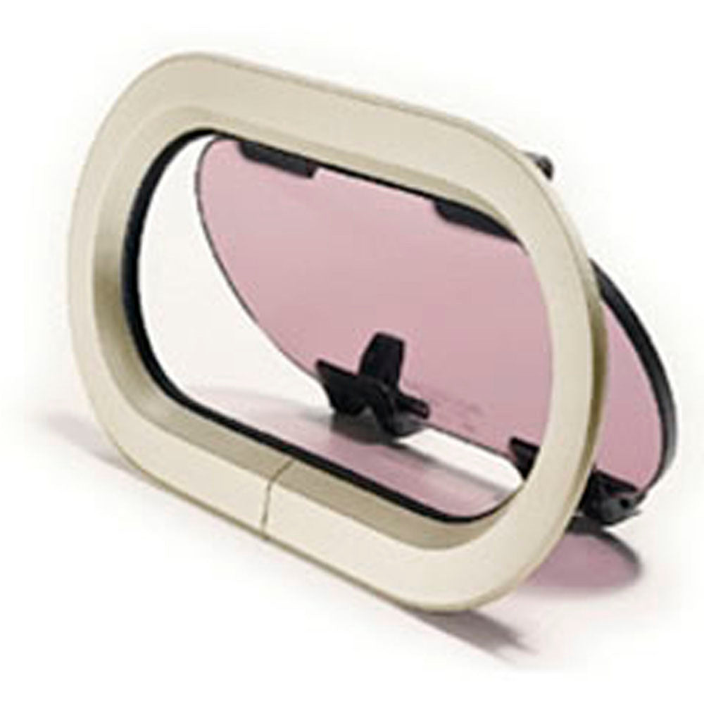 Lewmar Standard Portlight Size 1 Round End - Cut Out: 17.1 x 34.7 cm (6 3/4 x 13 11/16 in) - Clear Acrylic / Silver, White Trim (393182200)