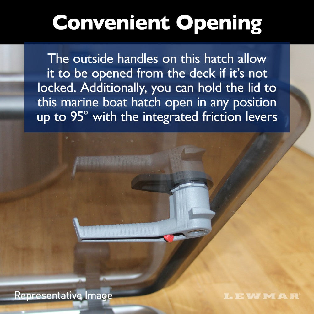 UsageBest used on powerboats for a sleek look or as ventilation hatches on sailboats and foredeck hatches on smaller to mid-size yachts.