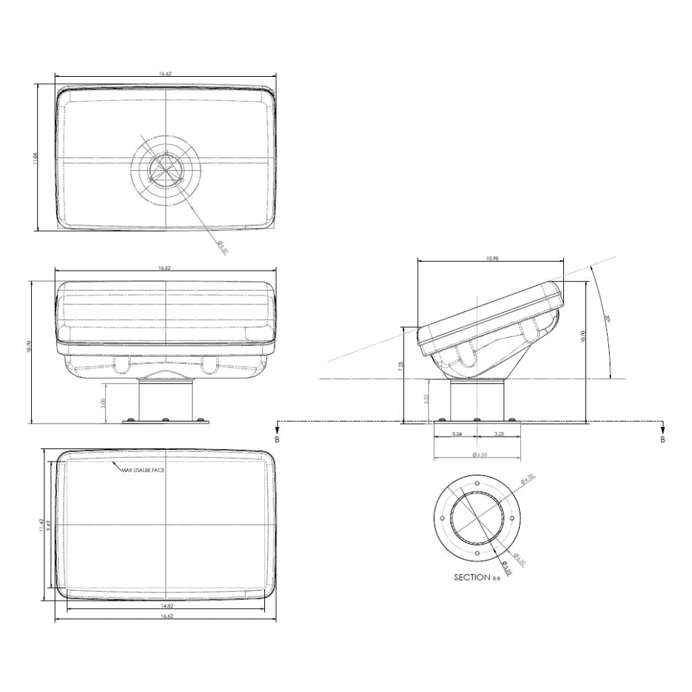 Like all NavPods, 70 ° PedestalPods are designed to resist impacts, vibration and moisture ingress, and are crafted with a thick gauge, UV-stable acrylic capped ABS material designed specifically to provide structural stability. The NavPod housing incorporates a double gasket system that provides an excellent watertight seal to keep spray off of electrical connections, thus ensuring the reliability and longevity of marine electronics. Electronic displays easily flush mount into the precut housing and all wires and connections are routed internally through the pedestal base.