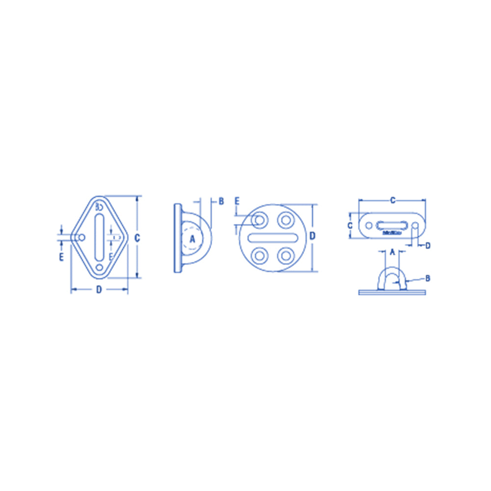Ronstan Padeye - Stainless Steel Diamond - U-Bolt w/ Nylon Pad - Size: 2 61/64 x 2 1/64 in (75 x 51 mm) (RF529)