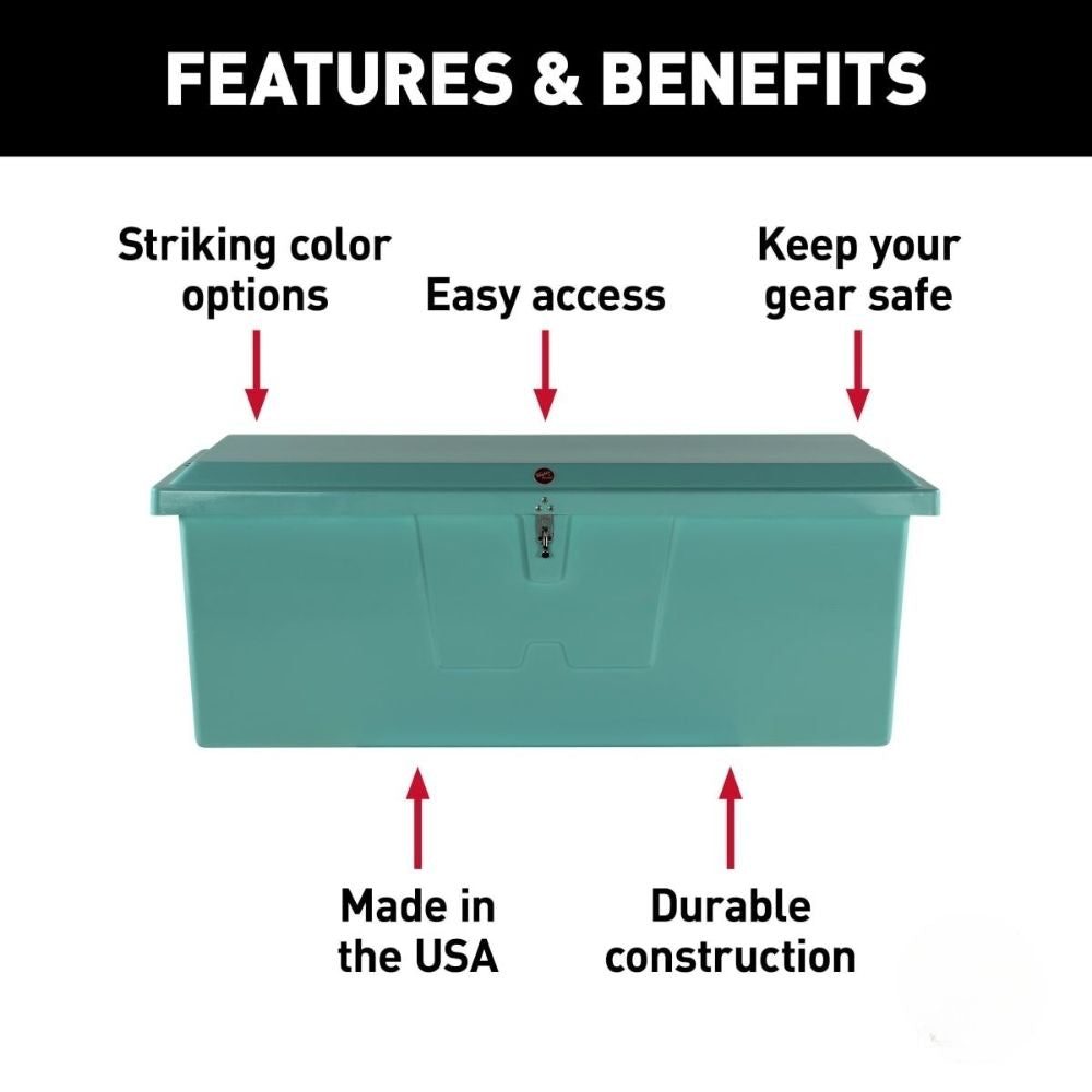 - DURABLE CONSTRUCTION- The molded fiberglass design holds up in all types of marine environments, while the heavy-duty stainless steel lockable latch and hinges are corrosion-resistant, keeping your gear safe and protected for the long haul.