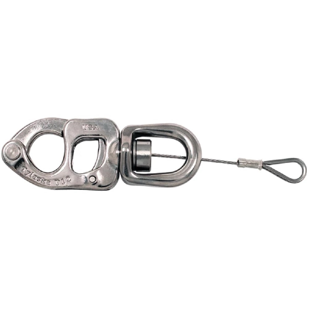 The T5 Standard Bail Snap Shackle Martin Breaker #TY1005-S-MB is perfect for those looking for a reliable remote release solution for sailing gear. It features a welded stainless steel cable and thimble, making rigging and operation a breeze. It’s like having an extra set of hands when you need them the most.