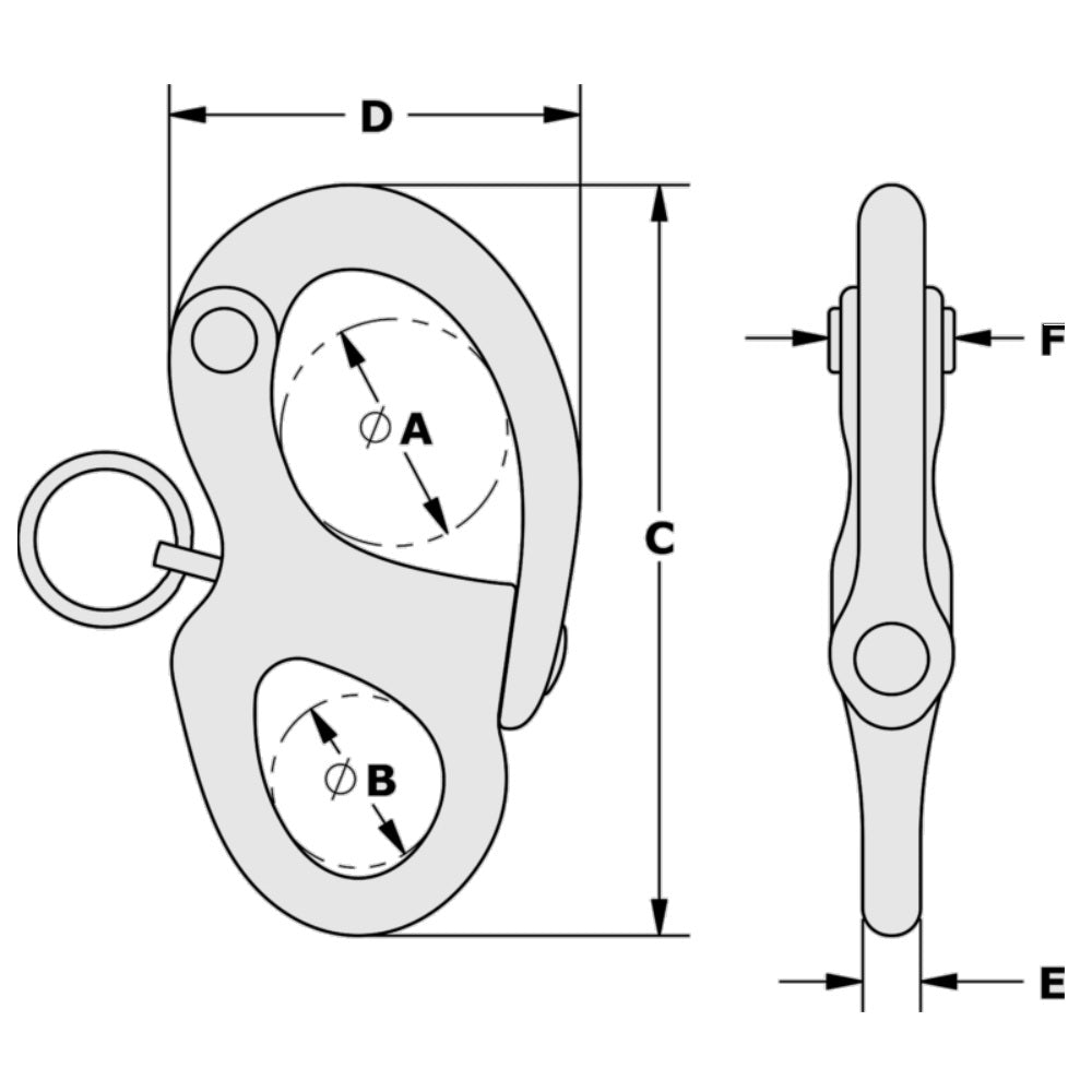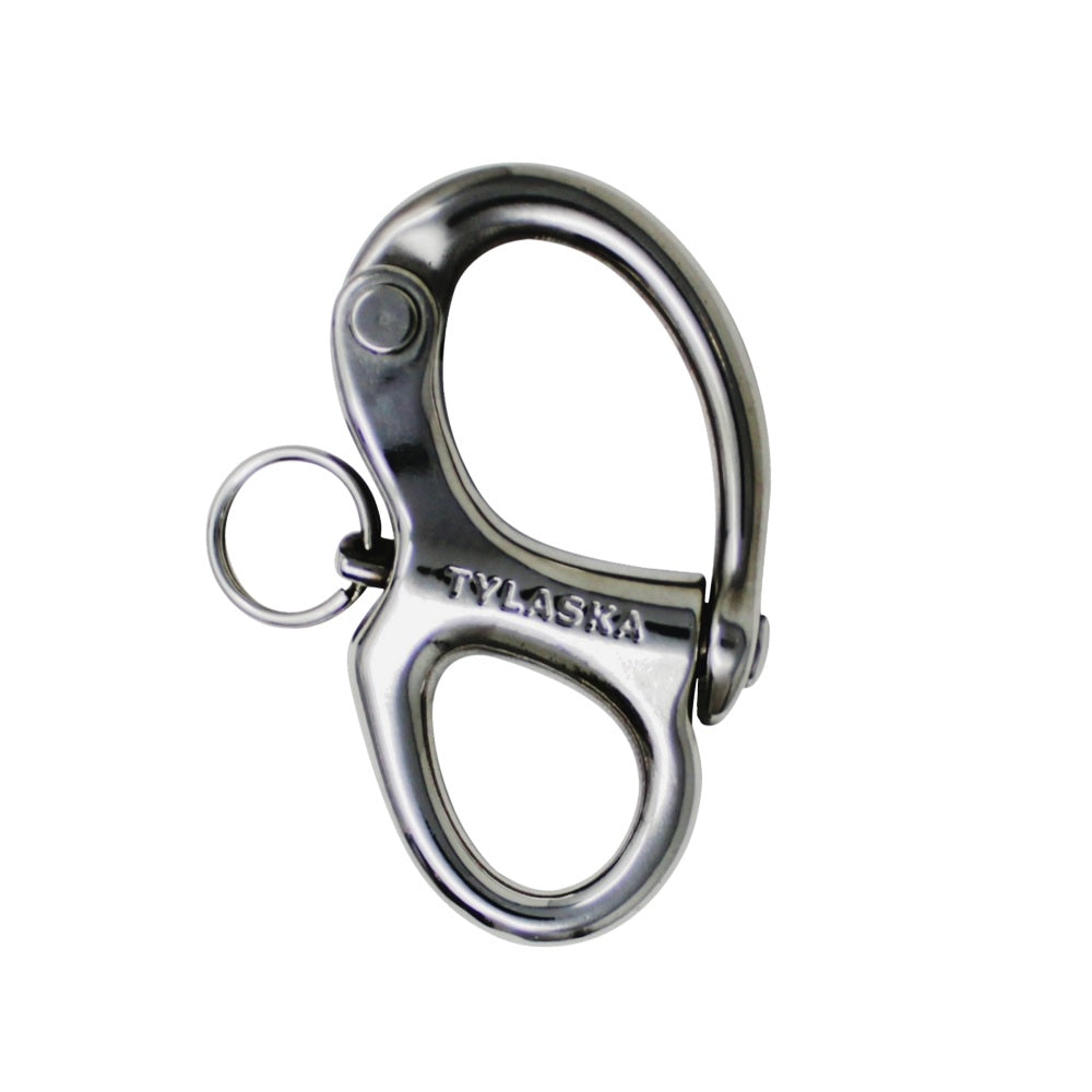 The Tylaska CR2 Snap Shackle - Fixed Bail #TY1102 is known for its impressive strength and top-notch corrosion resistance, perfect for both serious sailors and casual racers. Its sleek design helps avoid snags, a real plus when you're out on the water. You can even lock the pin to keep it secure during rough conditions.