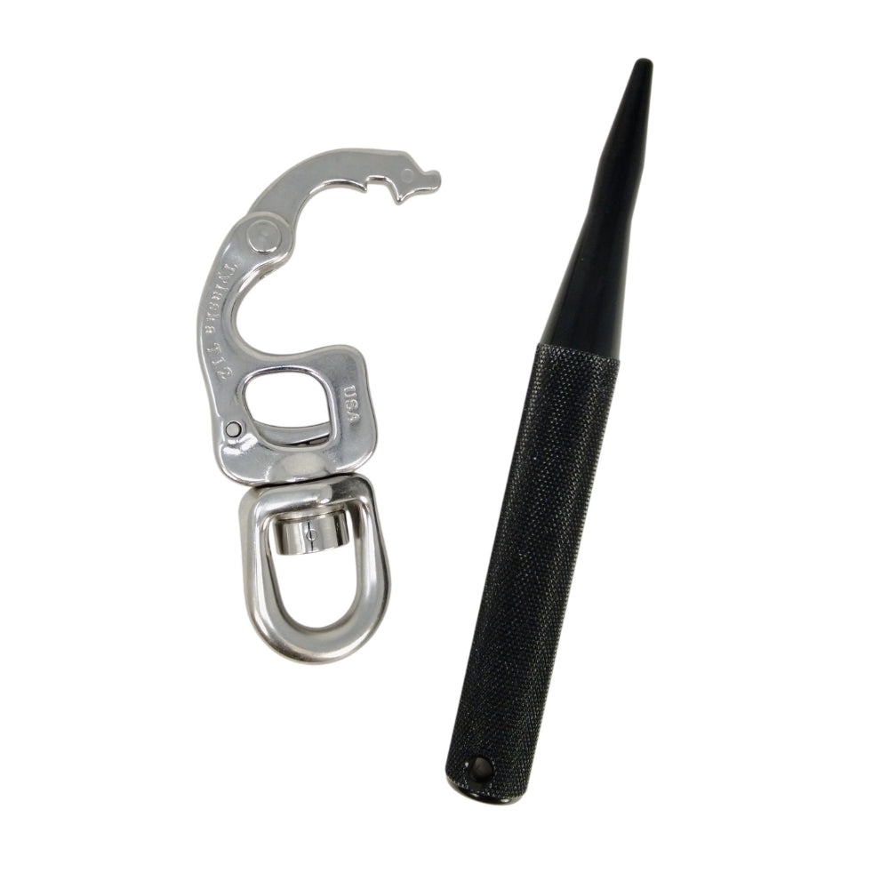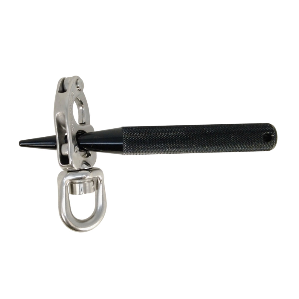 The Tylaska TY1606 is a handheld stepped fid tool, specifically designed for splicing rope to T5-T16 snap shackles. The stepped design provides multiple diameters on a single tool, making it highly versatile for different line sizes. This fid allows for precise and clean splicing, which is crucial for maintaining the strength and integrity of your lines. As a genuine Tylaska tool, it is built for durability and professional-grade performance.