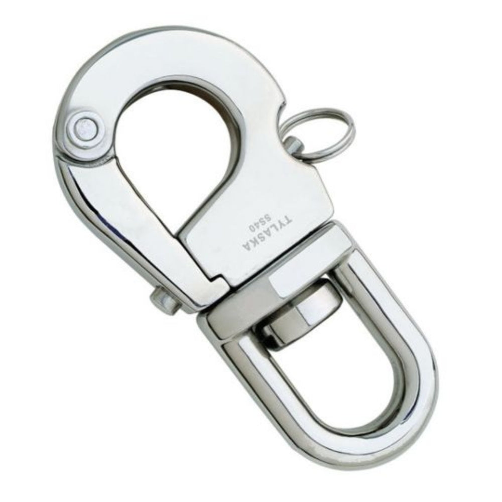 Tylaskas SS series lifting hooks are CE marked and feature highly polished 17-4 PH stainless steel components and a robust plunger pin latch design. They are the perfect solution for applications where the elegance of smooth, polished stainless steel is needed in addition to industrial strength and reliability. The SS20L hook is the result of a thorough overhaul of the design and manufacturing process of the classic SS20 sailing shackle. The SS20L is constructed of fully traceable load-bearing components and has undergone a series of comprehensive destructive and non-destructive tests to optimize the design and ensure that the hook can be safely used for overhead lifting. The larger SS40 shackle has undergone the same overhaul and has now been replaced by the lifting-certified SS40L hook. The SS20L and SS40L both meet the requirements to be safely used as lifting accessories as laid out in European Commissions Machinery Directive 2006/42.