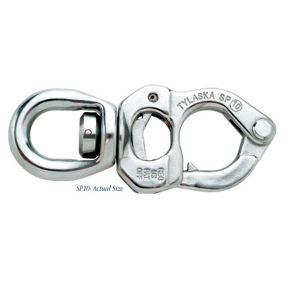 Tylaska's SP snap shackles are a retrofit of the old Sparcraft designed trigger release snap shackles. Made from the same durable 17-4PH stainless as before, the castings are now hipped to create a finished part similar to a forging in strength and metal consistency. While not as capable of high-load releases as the T shackle, the SP shackle is still a high quality and rugged shackle that lives up to the Tylaska name it carries. SP snap shackles offer a larger eye and are a more economic choice when compared with their T shackle counterparts.